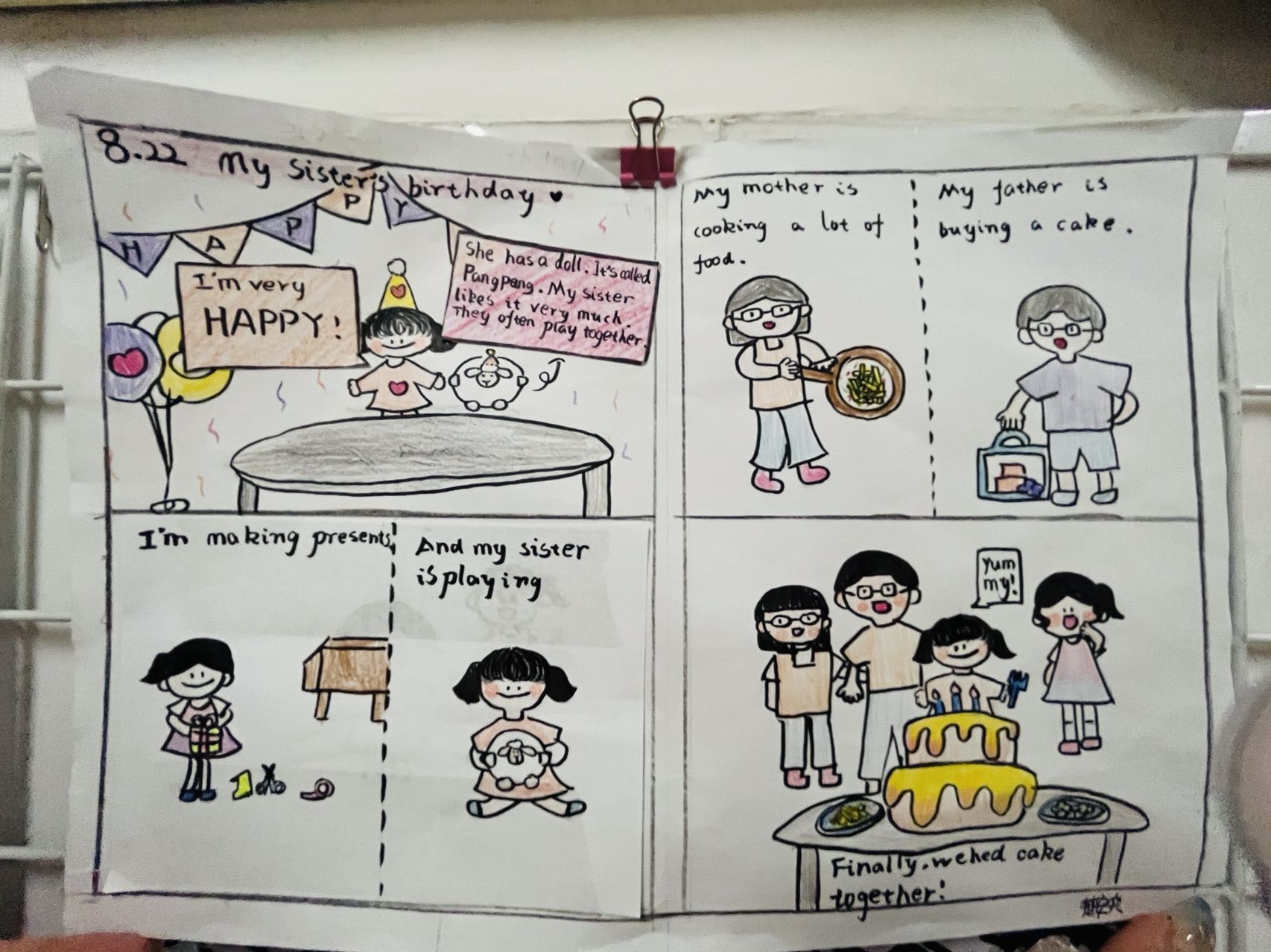 孩子們通過制作英語書、用英語記錄一天、英語時裝展等極大提高了孩子們學(xué)英語、用英語的興趣,孩子們的英語表達(dá)與應(yīng)用能力也得到了很大的提升。