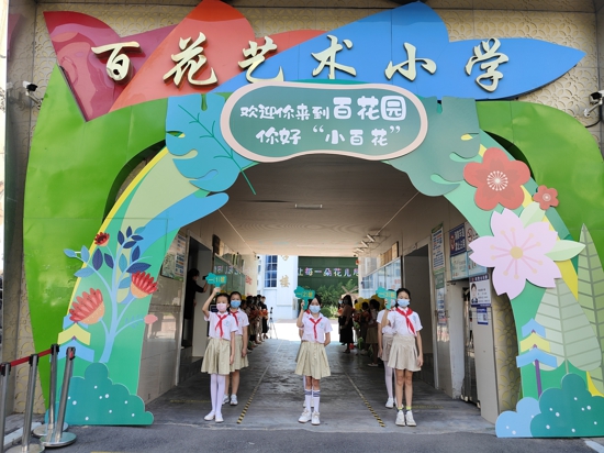 中新網(wǎng)河南9月3日電(吳勇強(qiáng) 王利敏)9月1日下午,鄭州市中原區(qū)百花藝術(shù)小學(xué)舉行了一年一度的新生入學(xué)儀式。校長(zhǎng)宮江霞帶領(lǐng)學(xué)校全體行政人員及學(xué)校禮儀隊(duì)隊(duì)員,在校門口迎接新同學(xué)加入“百花園”的大家庭。