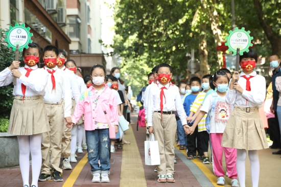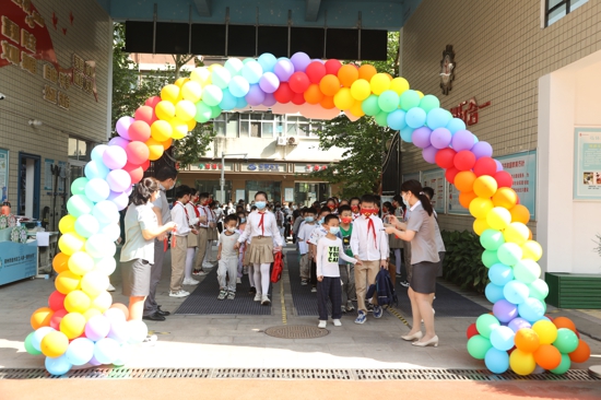 中新網(wǎng)河南9月3日電(吳勇強(qiáng) 趙文莉)2022年9月1日上午,金水區(qū)工人第一新村小學(xué)迎來了一批新的小可愛。他們稚嫩的面龐上滿是驚喜,靈動(dòng)的眼睛充滿好奇,蹦跳的步伐盡是欣喜!在高年級(jí)哥哥姐姐們的引領(lǐng)下,大手牽小手,個(gè)個(gè)昂首挺胸,神采奕奕,伴著歡快的音樂,邁著希望的步伐走上紅毯,穿過色彩繽紛的“啟智門”,步入了知識(shí)的殿堂。