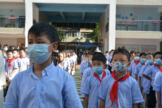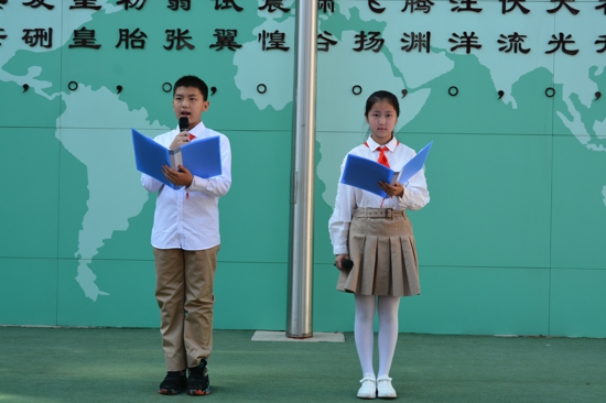 上午八點半,開學(xué)典禮在工人第一新村小學(xué)的操場上正式拉開帷幕。全體師生莊嚴(yán)肅穆地在國旗下舉行了新學(xué)期第一次升旗儀式,大家一起奏唱國歌,少先隊員敬獻(xiàn)隊禮,隨著國歌的響起,五星紅旗冉冉升起隨風(fēng)飄揚,同學(xué)們的內(nèi)心格外激動。