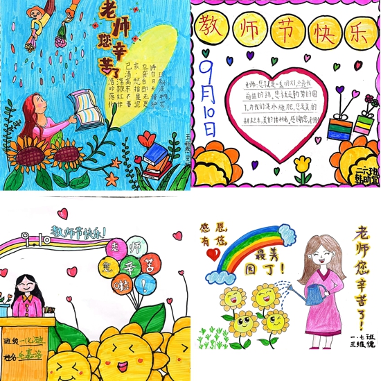一二年級的小嫩芽,用圖文結合的方式描繪著心中的祝愿?矗环髌穫鬟f著孩子們無盡的感激與祝愿,愿溫馨喜悅與幸福如同孩子們筆下吐露芬芳的花朵,永遠洋溢在老師們幸福的時光里。三四年級的太陽花,用文字創(chuàng)作的方式“向老師承諾”,一篇篇真情流露的文章,表達了孩子們對老師辛勤培育的感激,努力學習成長的志向。五六年級的石榴果,用真情創(chuàng)編詩歌敬獻給老師,一首首小詩無不滲透著師生深厚的情誼。一桌一講臺,一師一生情。