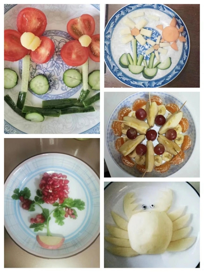 中年級(jí)同學(xué)們動(dòng)手制作的創(chuàng)意水果拼盤美味又精致。