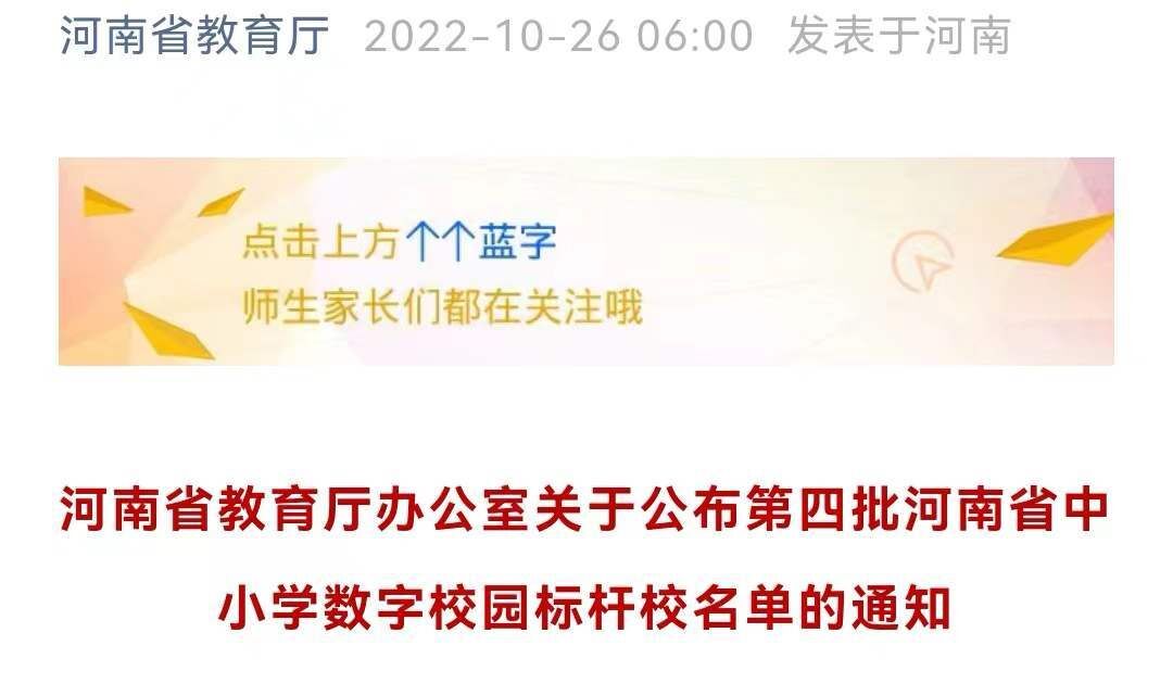 喜報!鄭州高新區(qū)外國語小學榮獲第四批河南省中小學數(shù)字校園標桿校