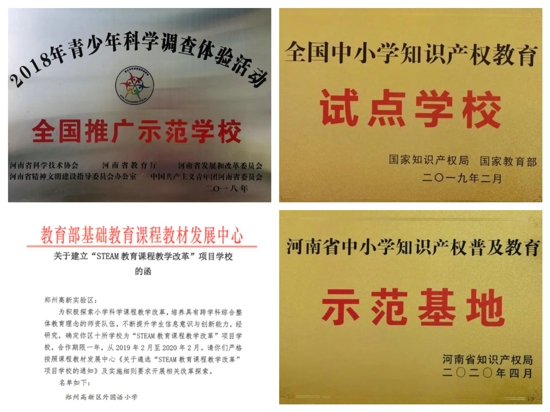在數(shù)字校園建設與發(fā)展中,不論是理論經(jīng)驗的積累,還是工作實踐的探索,外國語小學都獲得了喜人成績。先后榮獲鄭州市研究性學習先進學校,河南省中小學知識產(chǎn)權普及教育示范基地、河南省中小學人工智能教育實驗學校、青少年科學調(diào)查體驗活動全國推廣示范學校、全國中小學知識產(chǎn)權教育試點學校,相關實踐成果連續(xù)五屆參展中國教育創(chuàng)新成果公益博覽會,被教育部基礎教育課程教材發(fā)展中心確定為“STEAM教育課程教學改革”項目學校。學生參加相關比賽屢獲佳績,鄭州市中小學生科學運動會金獎,青少年航空航天模型錦標賽鄭州市團體第一名和河南省團體第二名,河南省青少年電子制作錦標賽小學組團體第一名,河南省青少年機器人競賽團隊銀獎等。