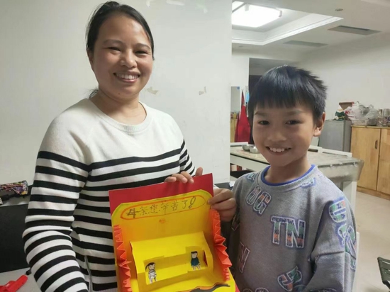 同學(xué)們展示了自己優(yōu)秀的作品以后親手把作品送給了父母,并學(xué)習(xí)感受到了父母平時(shí)生活的不易。