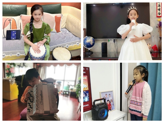 周末,我們與家人盡情HAPPY,一場家庭親子音樂會,讓我們悅唱心出彩!瞧,爸爸媽媽、爺爺奶奶(姥姥姥爺)都參與進來啦,演繹不同時代的旋律,融融溫馨、濃濃親情在音樂中緩緩流淌?矗⒃诩依锏匿撉,放在架子上的古箏、躺在盒子里的小提琴、藏在角落的小鼓、裝了水的杯子、盛了菜的小鋼盆兒……奏響一曲曲美妙的樂章,讓人不由自主地嘴角上揚;《我和我的祖國》《聽我說,謝謝你》……大家一起放聲歌唱;民族舞、拉丁舞、現(xiàn)代舞……,隨著音樂的節(jié)拍一起舞動起來,揮灑熱情、抒發(fā)希望。這場音樂會不僅為居家學習增添了樂趣,也為家庭和諧增進了親情的營養(yǎng)。