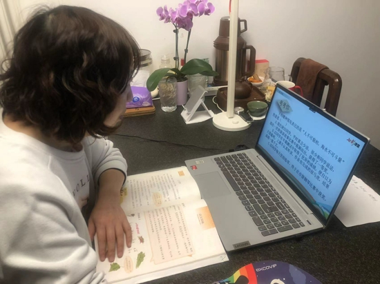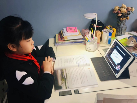 建設(shè)路第三小學(xué) 學(xué)生家中認(rèn)真聽講照片
