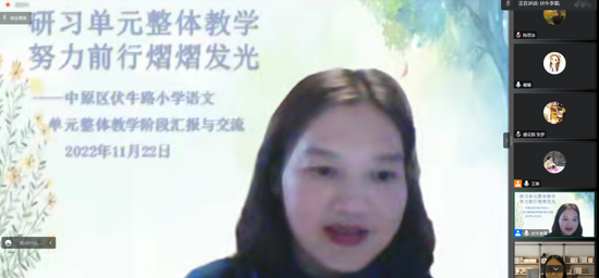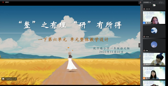 本次教研由伏牛路小學(xué)主辦,以“研習(xí)單元整體教學(xué)努力前行熠熠發(fā)光”為主題,活動(dòng)分三個(gè)環(huán)節(jié):伏牛路小學(xué)各教研組進(jìn)行語(yǔ)文單元整體教學(xué)階段匯報(bào)與交流;集團(tuán)校教師代表發(fā)言;集團(tuán)校領(lǐng)導(dǎo)進(jìn)行線上巡課總結(jié)反饋交流。