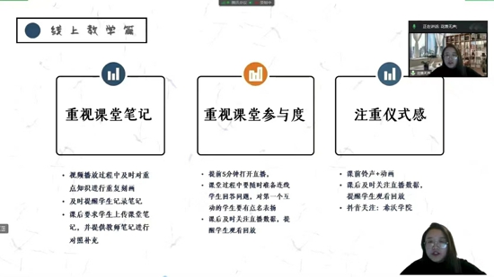 老師們積極交流,匯報(bào)了線上教學(xué)進(jìn)度,研討了提高線上教學(xué)效率的方式方法和如何高效布置作業(yè)、有效檢測(cè)等問(wèn)題。大家各獻(xiàn)良策,將自己的教育教學(xué)經(jīng)驗(yàn)與同事們分享。