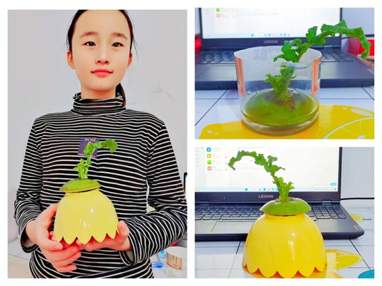 活動中,孩子們在老師的指導下、家長的幫助下積極開展了豐富多樣的活動。語文學科中,孩子們在老師的帶領下朗誦了與大雪節(jié)氣有關的詩詞并制作了一幅幅精美的詩配畫,一起跟隨詩人的腳步探索古詩中的大雪;美術學科中,老師給孩子們講述大雪節(jié)氣的民俗藝術知識并帶領大家一起創(chuàng)作“雪房子”“國風蘿卜”“臘梅花”等富有創(chuàng)作性的美術作品,讓孩子們在充分了解節(jié)氣知識的同時豐富美術創(chuàng)作體驗;科學學科則開展了“觀察水培蘿卜”“感受南北氣溫差異”“制作小雪人”等科學實踐活動,極大地調(diào)動了孩子們的參與積極性;音樂老師帶領孩子們學習節(jié)氣歌、表演手勢舞,感受節(jié)氣的別樣韻味;還有勞動課堂上,各班紛紛開展了燉羊肉、炸蘿卜丸子、巧做蓮藕等豐富多彩的勞動實踐活動,引導孩子們對大雪節(jié)氣的食俗有了更深一步的了解。
