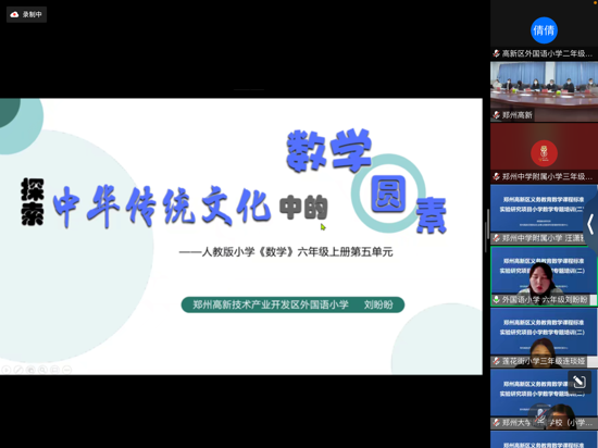 乘風(fēng)破浪,勇立潮頭。六年級數(shù)學(xué)組的大單元教學(xué)傳統(tǒng)文化融合設(shè)計(jì)《圓》被高新區(qū)評選為單元教學(xué)設(shè)計(jì)典型案例,12月8日,在高新區(qū)教研與智慧教育發(fā)展中心組織的義務(wù)教育數(shù)學(xué)課程標(biāo)準(zhǔn)實(shí)驗(yàn)研究項(xiàng)目專題培訓(xùn)會上,外國語小學(xué)劉盼盼老師進(jìn)行了大單元教學(xué)設(shè)計(jì)交流分享。劉老師及其團(tuán)隊(duì)以中華傳統(tǒng)文化為教學(xué)背景,引導(dǎo)學(xué)生基于數(shù)學(xué)文化探索圓的知識,從課標(biāo)分析、學(xué)情分析、多版本教材對比等方面入手,多角度剖析該單元教學(xué)內(nèi)容,設(shè)計(jì)適切的教學(xué)環(huán)節(jié)和評價(jià)任務(wù),讓知識的建構(gòu)、方法的創(chuàng)生、思維的進(jìn)階、觀念的確立水到渠成。