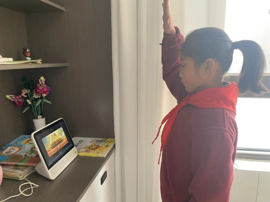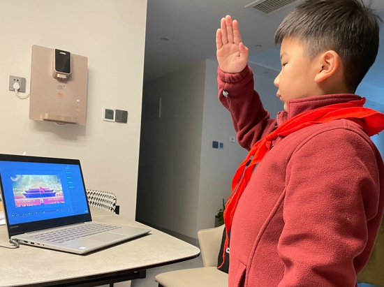 此次線上升旗儀式由梧桐中隊(duì)隊(duì)員常子軒主持,升旗儀式上,常子軒帶領(lǐng)隊(duì)員們通過(guò)視頻資料一同回顧了即將過(guò)去的2022年,從北京冬奧到神州飛天;從福建號(hào)正式下水到全球首架C919大飛機(jī)的交付;從香港回歸25周年紀(jì)念到抗擊疫情中的肝膽相助;從重慶山火中的騎行少年到冒著風(fēng)雪戍守邊疆的年輕戰(zhàn)士……梧桐中隊(duì)隊(duì)員張若瑜在活動(dòng)后講到:“在回顧的過(guò)程中深切感受到了這一年中人民的堅(jiān)忍、祖國(guó)的富強(qiáng),同時(shí)也看到了時(shí)代給予我們的使命。”