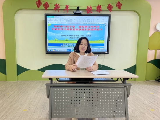 校長毛金霞在會議上做了新學(xué)期致辭,向全體教師傳達(dá)了中原區(qū)教育局黨組書記、局長吳曉昊在中原區(qū)2023年教育工作會議上的講話精神,帶領(lǐng)教師們學(xué)習(xí)了《鄭州市中原區(qū)教育局2023年工作要點》,了解中原區(qū)教育發(fā)展動向,并回顧了2022年的工作要點,充分肯定了2022年工作成績,同時對2023年工作進(jìn)行了詳細(xì)部署。