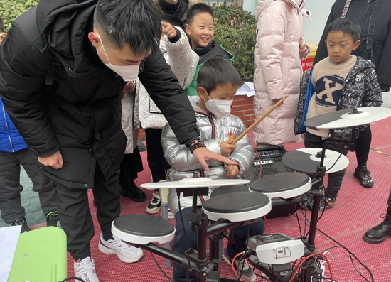學(xué)生體驗(yàn)架子鼓有模有樣