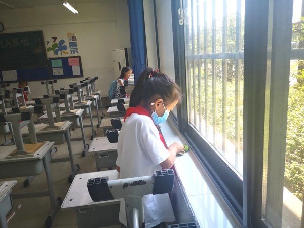 在中隊(duì)輔導(dǎo)員的帶領(lǐng)下,少先隊(duì)員紛紛拿著掃帚、拖把、抹布、水桶等勞動工具,到劃定的衛(wèi)生區(qū)域里打掃衛(wèi)生。大家本著“團(tuán)結(jié)協(xié)作、愛校如家”的精神,相互配合,不怕臟、不怕累——打掃教室、擦洗窗戶、整理桌凳、清除死角……雖然少先隊(duì)員汗流浹背,但樂在其中,表現(xiàn)了良好的精神風(fēng)貌。大掃除活動現(xiàn)場氣氛十分活躍,大家忙碌的身影,成為校園最美的流動風(fēng)景。經(jīng)過大家的共同努力,校容校貌煥然一新,到處都透出清爽與潔凈。