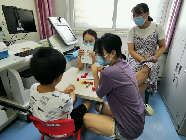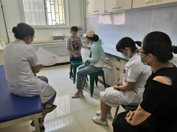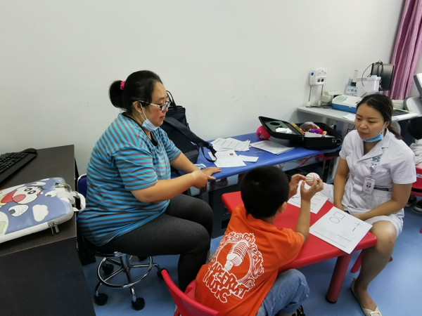 此次評估工作由鄭州市康復(fù)醫(yī)院專家和中原區(qū)育智學(xué)校教師組成評估小組,在鄭州市康復(fù)醫(yī)院進行入學(xué)前評估。家長首先填寫殘疾兒童教育評估安置意見表,然后由評估小組進行初步評估,針對每個孩子的具體情況,康復(fù)專家進一步為殘疾兒童進行對應(yīng)項目的專業(yè)評估,如發(fā)育、智力、語言、構(gòu)音、結(jié)構(gòu)化評估。