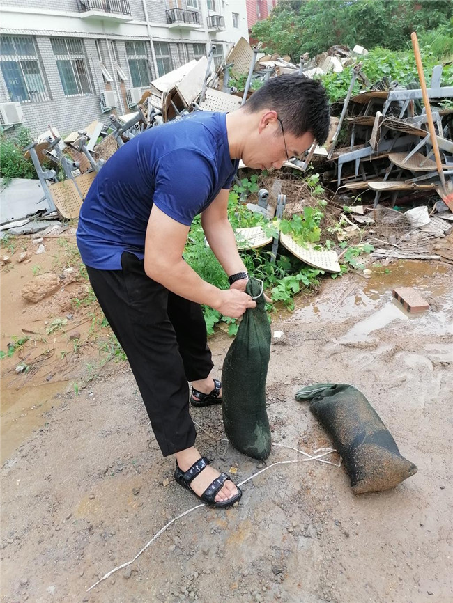 在從后勤處得知學(xué)院防汛沙袋緊缺的消息后,黨員突擊隊(duì)員們放棄休息的時(shí)間,領(lǐng)取沙袋、挽起胳膊、扛起鐵鍬、奔赴現(xiàn)場(chǎng)。挖土、裝沙、運(yùn)送、堆砌,大家齊心協(xié)力、奮勇爭(zhēng)先,經(jīng)過一個(gè)多小時(shí)的不懈努力,共填裝沙袋百余個(gè),展現(xiàn)了黨員同志良好的精神風(fēng)貌和勇于擔(dān)當(dāng)?shù)姆瞰I(xiàn)精神。