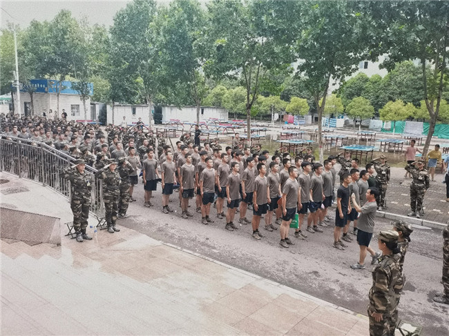 河南省第二屆學(xué)生軍事訓(xùn)練營(yíng)軍訓(xùn)官兵團(tuán)結(jié)協(xié)作、揮汗如雨
