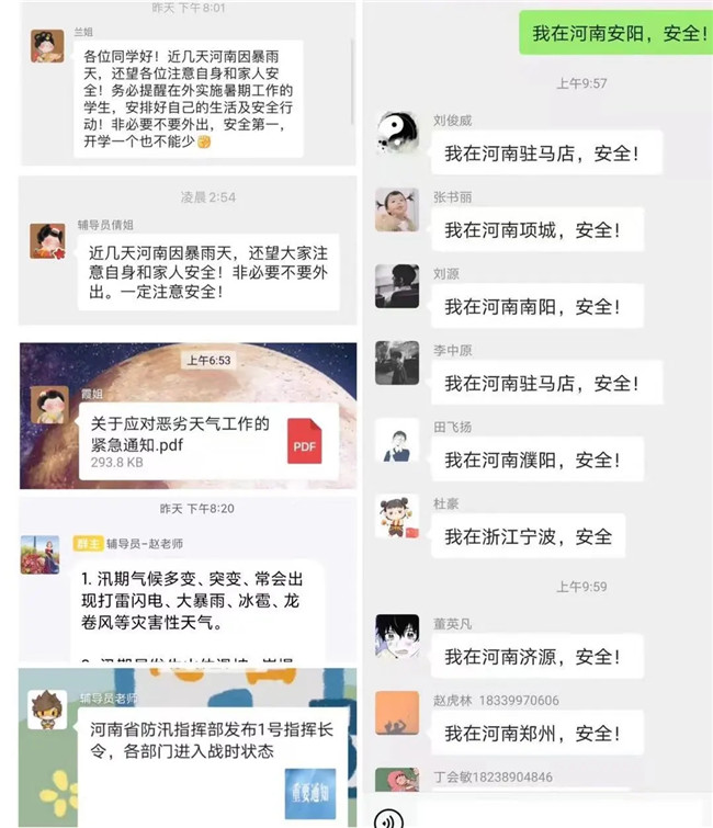 此次降雨范圍廣,全省各地不同程度遭遇極端強(qiáng)降雨。為提高師生安全防范意識,學(xué)校各部門(單位)第一時間通過微博、微信、短視頻等平臺,加強(qiáng)對廣大師生員工的宣傳教育,幫助師生充分認(rèn)識極端惡劣天氣造成的危害,認(rèn)真做好防大汛的思想準(zhǔn)備,謹(jǐn)慎出行、積極應(yīng)對,認(rèn)真做好個人防護(hù)。針對分布在省內(nèi)外的5000余名實(shí)習(xí)學(xué)生,河南交院第一時間組織實(shí)習(xí)指導(dǎo)教師,克服通訊不暢困難,進(jìn)行全面的聯(lián)系摸排,迅速確定學(xué)生位置狀態(tài)、加強(qiáng)安全防護(hù)教育,確保實(shí)習(xí)學(xué)生人身安全。