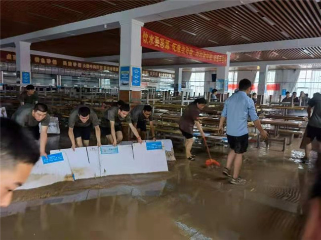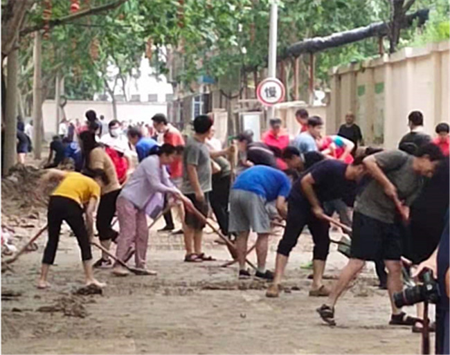 師生轉(zhuǎn)危為安。21日早晨,東明校區(qū)積水尚未退去,淤泥沉積嚴(yán)重。王浩然、張瑩再次前往校區(qū)內(nèi)各處了解受災(zāi)情況,在外部物資無法進入的情況下,積極協(xié)調(diào)保衛(wèi)處、后勤服務(wù)中心等部門,自發(fā)組織進行校園排水、道路清淤等工作,學(xué)校餐廳利用現(xiàn)有資源,迅速制作應(yīng)急食品,保障學(xué)生基本生活物資供應(yīng),保證正常生活秩序。在學(xué)校黨委的統(tǒng)一部署和安排下,東明辦積極組織、協(xié)調(diào)、配合學(xué)校各部門、各單位開展了河南省第二屆學(xué)生軍事訓(xùn)練營100余名軍訓(xùn)官兵、廣大教職工志愿者清理道路垃圾、淤泥等系列防汛救災(zāi)活動,食堂、宿舍樓、道路上,隨處都能看到大家揮灑汗水的身影,在廣大師生爭分奪秒、分秒必爭,團結(jié)協(xié)作、奮力拼搏下,東明路校區(qū)積水已清理完畢,路面煥然一新,各場地整潔干潔,全力保障東明校區(qū)的基本穩(wěn)定,降低了災(zāi)情損失,為后續(xù)救災(zāi)防汛工作的開展奠定了堅實基礎(chǔ)。“面對汛情,作為一名黨員,必須排除萬難、沖鋒在前,把師生的生命財產(chǎn)安全放到第一位,堅決做到越是艱險越向前!”持續(xù)奮戰(zhàn)了好幾天的王浩然、張瑩異口同聲地說道。
