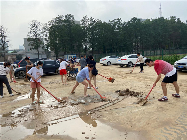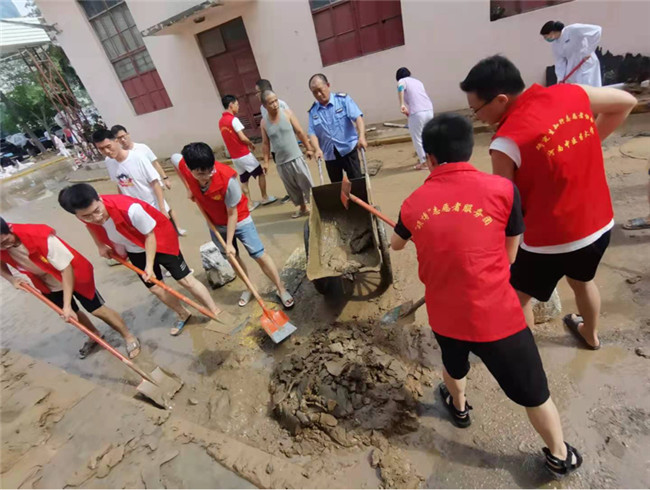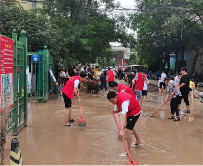 在這緊急關(guān)頭,黨員先鋒率先站了出來,帶領(lǐng)三臨床學(xué)生積極自救,沖在了志愿服務(wù)的第一線。各黨支部也帶領(lǐng)同學(xué)們合力對宿舍及樓道內(nèi)的積水、淤泥進行清掃,為大家清出一條出入通道。