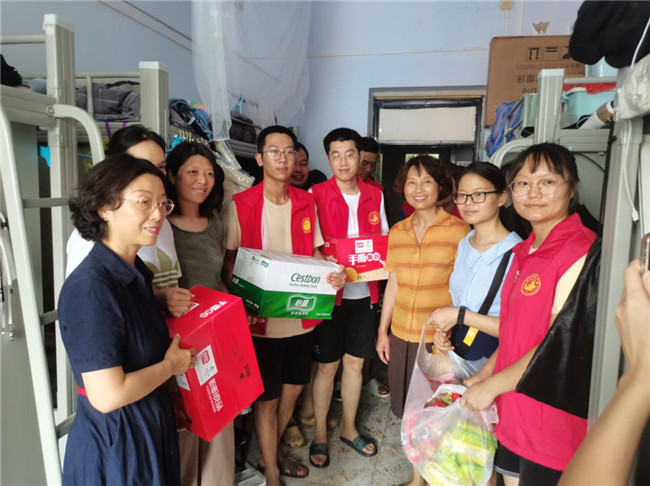 災(zāi)難無情人有情,學(xué)校的關(guān)懷始終在第一線。7月22日,新校區(qū)交通剛剛恢復(fù),校黨委研工部、研究生院在蔣時紅部長的帶領(lǐng)下,組成慰問隊深入三臨床研究生宿舍,探望慰問了受洪澇影響的研究生,并為同學(xué)們帶來了急需的水和食物,并深入了解學(xué)生學(xué)習(xí)、生活及思想狀況,鼓勵同學(xué)們積極應(yīng)對。