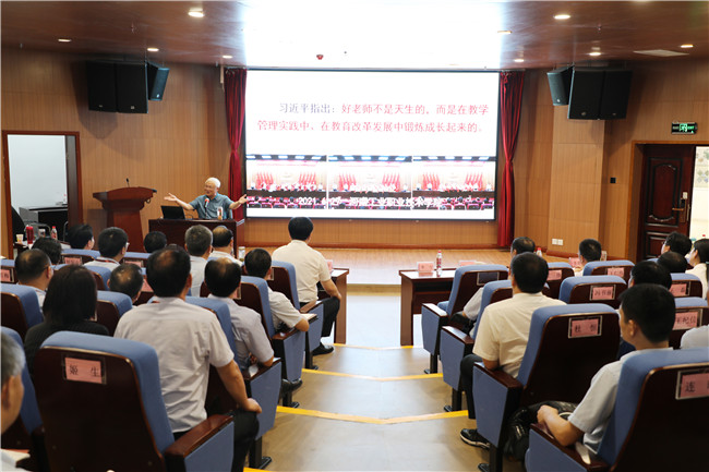 吳祖平參事講授的《做中華民族“夢之隊”的筑夢人》,從四個方面講解了如何做一名“有理想信念、有道德情操、有扎實(shí)學(xué)識、有仁愛之心”的“四有”好老師;