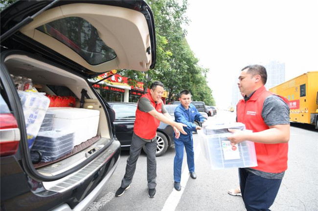沖鋒在前——向水而行,逆風(fēng)營救。7月21日,學(xué)校接到有部分教職工被積水圍困在東四環(huán)立交橋附近。到消息后,學(xué)校迅速組織黨員突擊隊前往解救被困人員。當(dāng)營救車輛行駛至鄭開大道與楊橋大道交叉口時,積水已經(jīng)達到1米以上。營救小隊當(dāng)即決定冒險涉水前行,解救被困人員。最終在應(yīng)急救援隊和學(xué)校救援隊的努力下,順利將被困教職工全部救出。