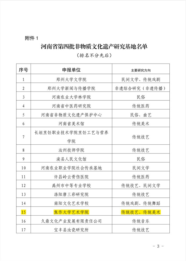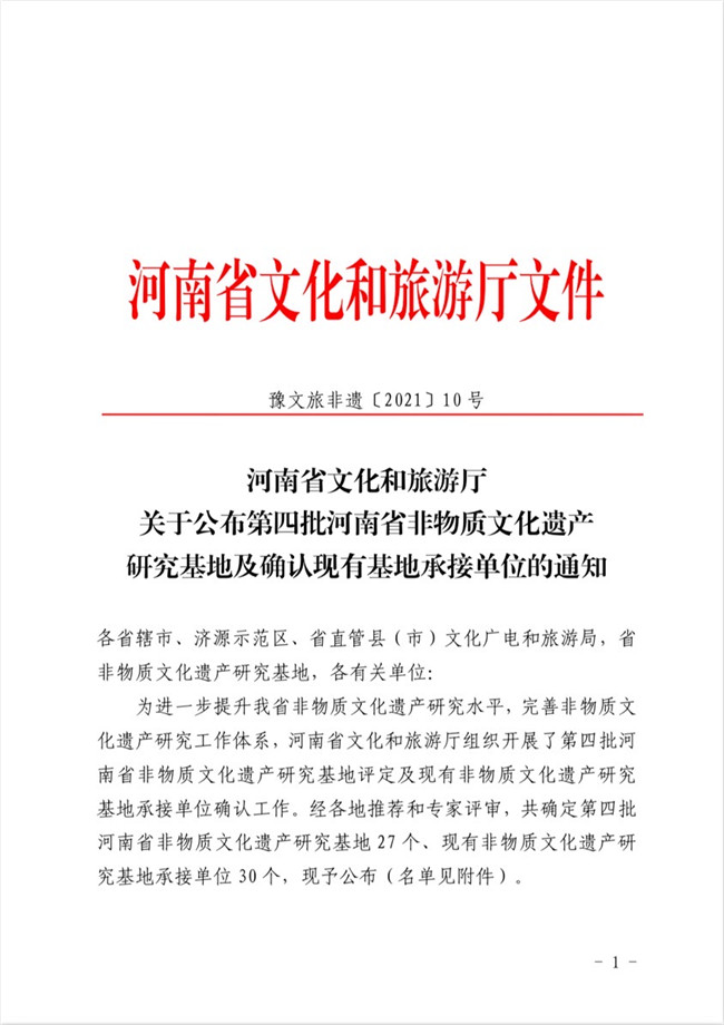 中新河南網(wǎng)7月29日電(魏豪)7月26日,河南省文化和旅游廳《關(guān)于公布了第四批河南省非物質(zhì)文化遺產(chǎn)研究基地及確認(rèn)現(xiàn)有基地承接單位的通知》(豫文旅非遺〔2021〕10號文件),焦作大學(xué)藝術(shù)學(xué)院名列其中,成功入選河南省非物質(zhì)文化遺產(chǎn)研究基地,該校校再增添一省級科研平臺。