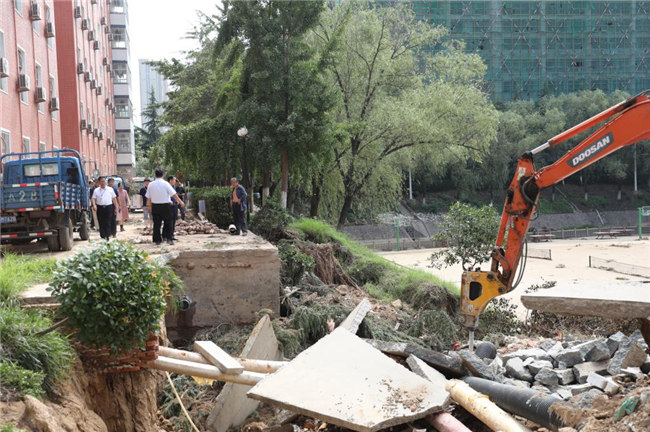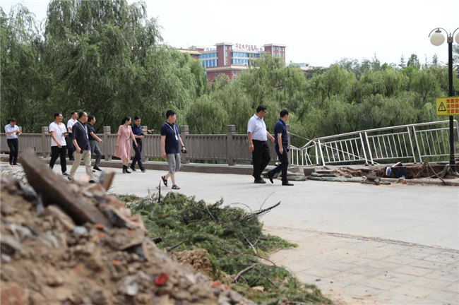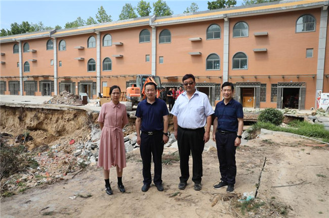 工作會結(jié)束后,平奇一行來到學(xué)校受災(zāi)嚴(yán)重的藝術(shù)樓、書望書院、后山、無名湖等處,實地勘察受災(zāi)情況,看望和慰問了災(zāi)后重建的工作人員們,代表教育廳對他們不辭辛苦、積極進(jìn)行防汛救災(zāi)工作表示的感謝。