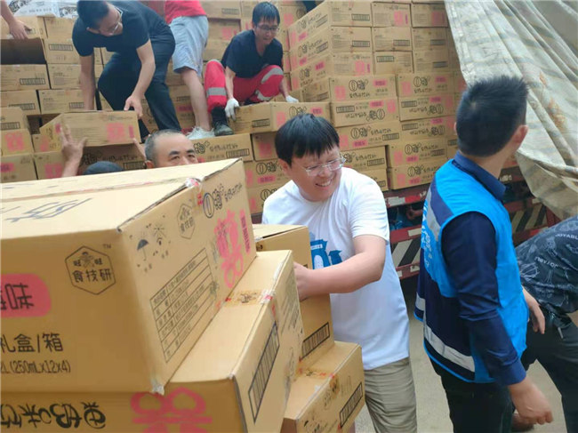 會計學院教師黨員何保國教授時刻牢記發(fā)揮黨員的先鋒模范作用,積極聯(lián)絡各方,主動參與到鄭州市二七區(qū)青年志愿者服務工作中,在二七區(qū)地方糧食儲備庫裝卸、分裝全國各地運送至鄭州的援助物資。在7月24日、25日兩天時間里,他與其他志愿者一起,共裝卸、轉運瓶裝水逾3000件、香菇醬100件、救援藥品300箱。