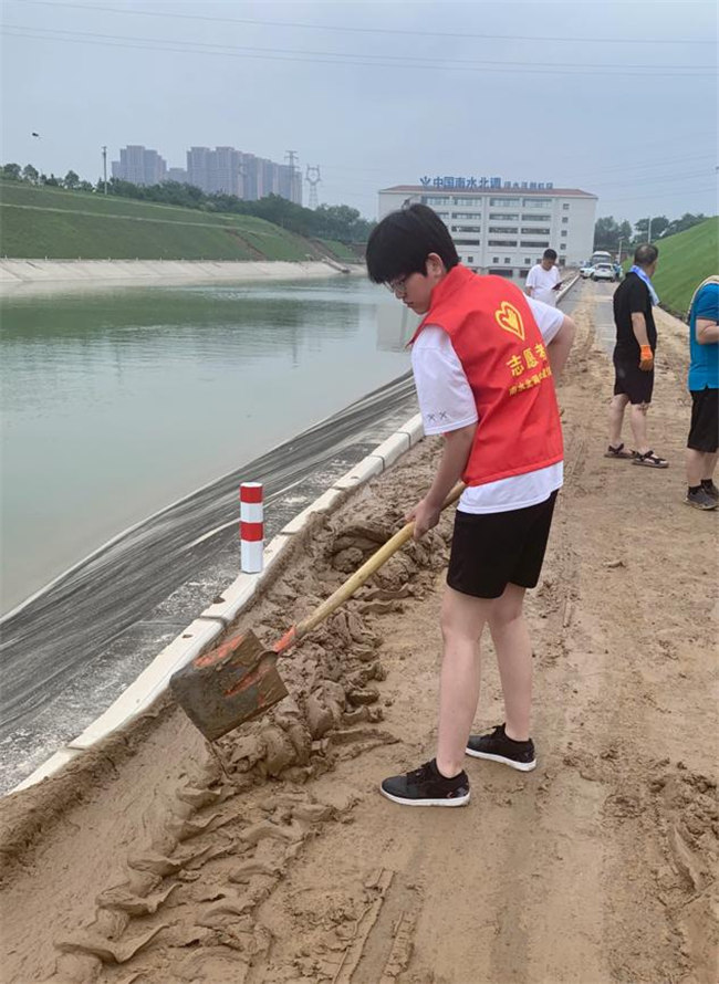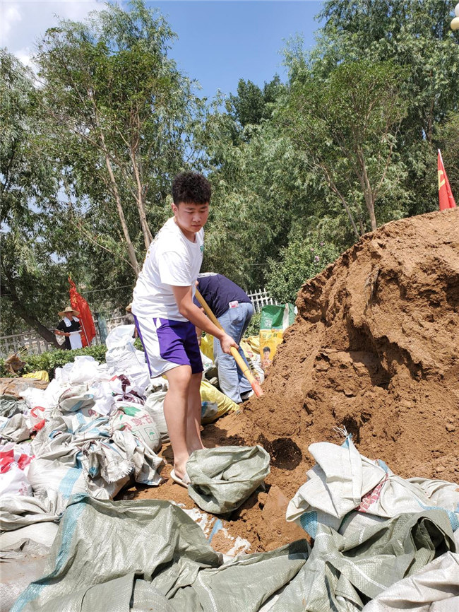 7月22日晚22時,連日暴雨導致衛(wèi)河下游的新鄉(xiāng)段決堤,附近成為一片澤國,多地險情告急。在這個緊急時刻,學校國旗班學生賈星龍聽聞消息心急如焚,身在外地的他即刻聯(lián)系周圍同學奔赴新鄉(xiāng)牧野區(qū),攜手同學前往一線于新鄉(xiāng)牧野區(qū)衛(wèi)河段參與抗洪救災?紤]安全,當?shù)睾樗畤乐氐囊痪地段由解放軍戰(zhàn)士負責抗洪救災,普通群眾不能進入。此時,他自報家門,稱自己是學校國旗護衛(wèi)隊成員,隸屬預備役,最終被允許進入一線與解放軍戰(zhàn)士一起搶險,歷時三天三夜,困了馬路下一躺,渴了喝礦泉水葡萄糖補充體力……歷時三天三夜高強度作業(yè),賈星龍完成了防汛救災任務,得到了當?shù)仡I導和解放軍的肯定。賈星龍感慨道,“江山就是人民,人民就是江山”絕不是一句空話,榜樣就在我們身邊,“最可愛的人”解放軍戰(zhàn)士才是我們應該追一輩子的明星。
