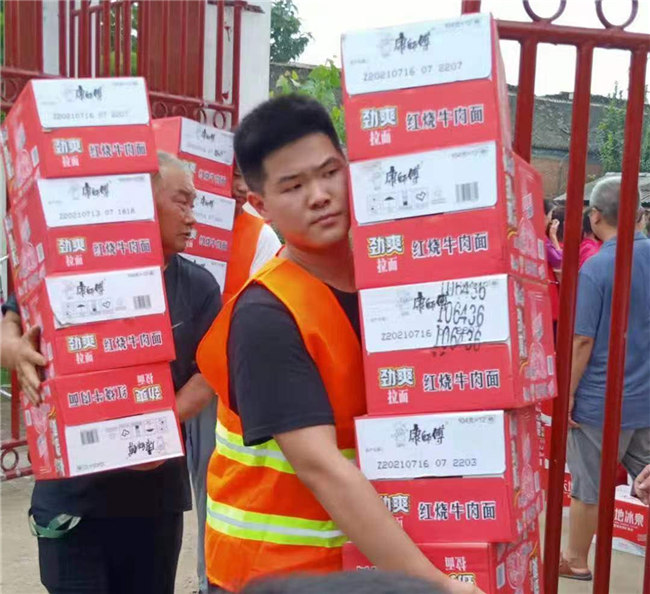 藝術學院2020級音樂表演專升本3班的張運凱第一時間加入了河南防汛志愿者的微信群。7月22日,他聯(lián)系到了一位從航空港區(qū)去市區(qū)送物資的志愿者,搭順風車把面包送到鄭大五附院一號樓13樓兒童康復醫(yī)院。當天晚上9點又一批物資運到,包括上千箱火腿腸,還有兒童尿不濕、奶粉等等,張運凱一直沒有離開,繼續(xù)幫忙運送物資。他和志愿者們工作至深夜12點搬完所有物資并分發(fā)給每位病人。家在龍湖鎮(zhèn)的張運凱此時已無法回家,只得在醫(yī)院住了一晚。張運凱說,他知道自己能力有限,但也想盡其所能。看到社會上有那么多愛心人士捐款捐物,內(nèi)心非常很感動。一方有難,八方支援。有這種精神,相信任何困難都無法把我們打倒,只會讓我們越來越團結,越來越強大!