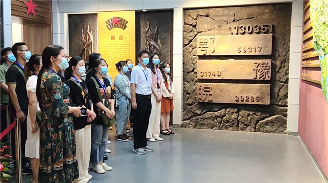 下午,培訓(xùn)班一行來到大別山干部學(xué)院,參觀了鄂豫皖蘇區(qū)首府革命博物館,瞻仰鄂豫皖烈士陵園,接受紅色教育。