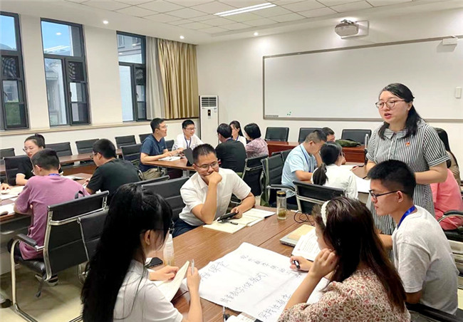 30日上午,黃淮學(xué)院教師發(fā)展中心關(guān)英子老師為教師們帶來了“BOPPPS有效教學(xué)設(shè)計”的報告,帶領(lǐng)新進教師們學(xué)習(xí)了教學(xué)中的新方式、新方法。下午,結(jié)業(yè)儀式上6個學(xué)習(xí)小組的新進教師代表結(jié)合本次培訓(xùn)專家講述內(nèi)容和每晚各組分組討論學(xué)習(xí)成果,分享了學(xué)習(xí)體會和收獲。