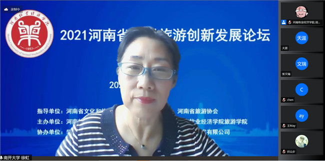 南開大學(xué)休閑農(nóng)業(yè)與鄉(xiāng)村旅游研究中心主任、博士生導(dǎo)師徐虹教授作《鄉(xiāng)村振興與旅游產(chǎn)業(yè)創(chuàng)新發(fā)展的再思考》主題演講。徐虹的關(guān)于鄉(xiāng)村旅游建設(shè)“四生和諧系統(tǒng)”、“123456”發(fā)展策略等理論引發(fā)了與會(huì)者極大的興趣;關(guān)于河南省應(yīng)積極發(fā)展研學(xué)、度假、康養(yǎng)和體育旅游的建議,對(duì)河南鄉(xiāng)村旅游創(chuàng)新發(fā)展大有裨益。