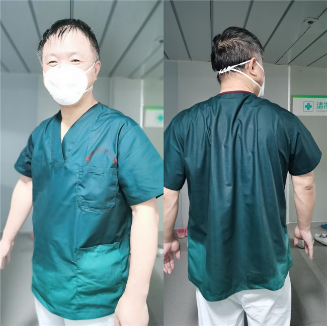 截止目前,連續(xù)三天的救治工作,余學(xué)慶主任他始終堅持戰(zhàn)斗在最危險的臨床第一線。每到下班時,穿在防護(hù)服的衣服輕輕一擰,就能流出大灘的汗水來。