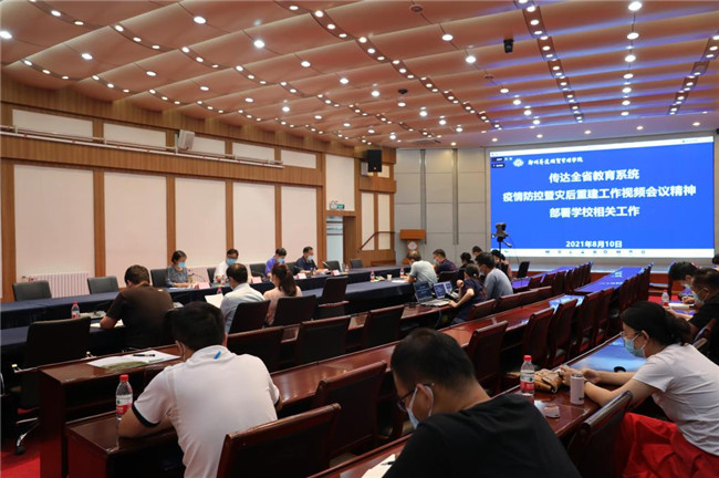 中新河南網(wǎng)8月12日電(魏巍 郭金超)8月9日全省教育系統(tǒng)舉行疫情防控暨災后重建工作視頻會后,鄭州升達經(jīng)貿(mào)管理學院分別于8月9日下午和8月10日下午,召開疫情防控指揮部工作會和全校專題視頻會議,傳達學習全省教育系統(tǒng)疫情防控暨災后重建工作視頻會議精神,貫徹落實相關(guān)工作任務要求。全體校領(lǐng)導及各工作專班組長、各單位主管、在校行政人員通過線上和線下參加會議。