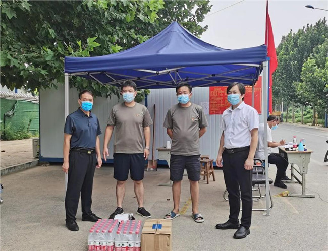 中新河南網(wǎng)8月13日電(魏豪)為堅決打贏疫情防控攻堅戰(zhàn),更好地承擔(dān)社會責(zé)任,發(fā)揮文明校園的示范引領(lǐng)作用,焦作大學(xué)積極響應(yīng)省文明辦號召,按照就近就便和結(jié)對定點的原則開展“四送一助力”專項行動。8月12日上午,校黨委委員、副校長吳玉倫帶領(lǐng)學(xué)校宣傳統(tǒng)戰(zhàn)部、后勤管理處工作人員,來到學(xué)校所在的新城街道辦事處億祥社區(qū)和學(xué)校結(jié)對幫扶的墻南村疫情防控卡點,向在疫情防控一線的社區(qū)工作人員及志愿者送去關(guān)懷慰問和防疫防暑降溫物資,并走訪了解學(xué)校黨員志愿者就近參與社區(qū)疫情防控工作情況。