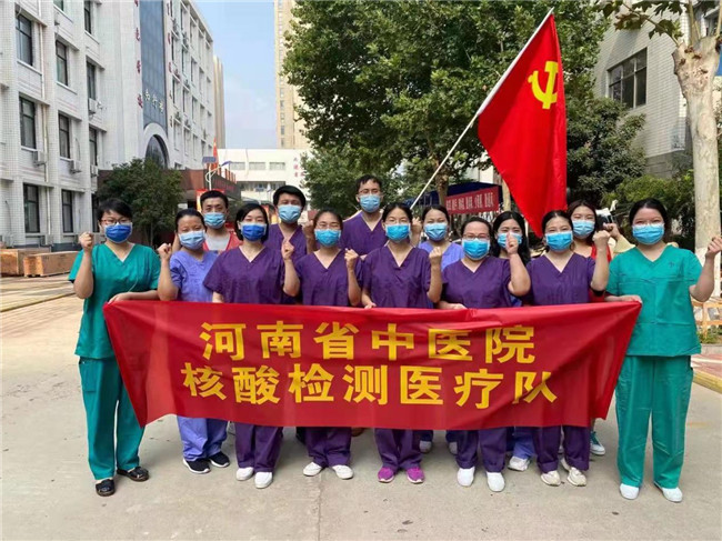 在接到上級緊急任務通知后,附屬醫(yī)院黨員干部在第一時間遞交請戰(zhàn)書,向醫(yī)院黨委申請奔赴防疫一線。僅2個小時,各附屬醫(yī)院就迅速組建了醫(yī)療救援隊、核酸檢測采樣隊、支援保障隊,完成了從發(fā)出通知到集結登車的迅速行動。目前,河南中醫(yī)院大學附屬醫(yī)院共派出近8000人次核酸采樣醫(yī)護人員,赴管城區(qū)、金水區(qū)、惠濟區(qū)、高新區(qū)、滎陽等社區(qū)300多個采集點,完成近150萬人次的核酸檢測采樣工作。組建涵蓋脾胃肝膽病科、腦病科、介入科、腎病科、呼吸科、血液腫瘤科、心血管科等多個專業(yè)的醫(yī)護人員組成緊急醫(yī)療隊,赴鄭州市第一人民醫(yī)院航空港院區(qū)、鄭州市第三人民醫(yī)院惠濟院區(qū)等開展醫(yī)療救援。自7月31日到8月15日,半個月日日夜夜的堅守,醫(yī)務隊員們與時間賽跑、與病毒斗爭、枕戈待旦、全力奮戰(zhàn),將初心與使命映在了疫情防控一線,為人民群眾筑起了一道堅不可摧的抗疫“長城”。
