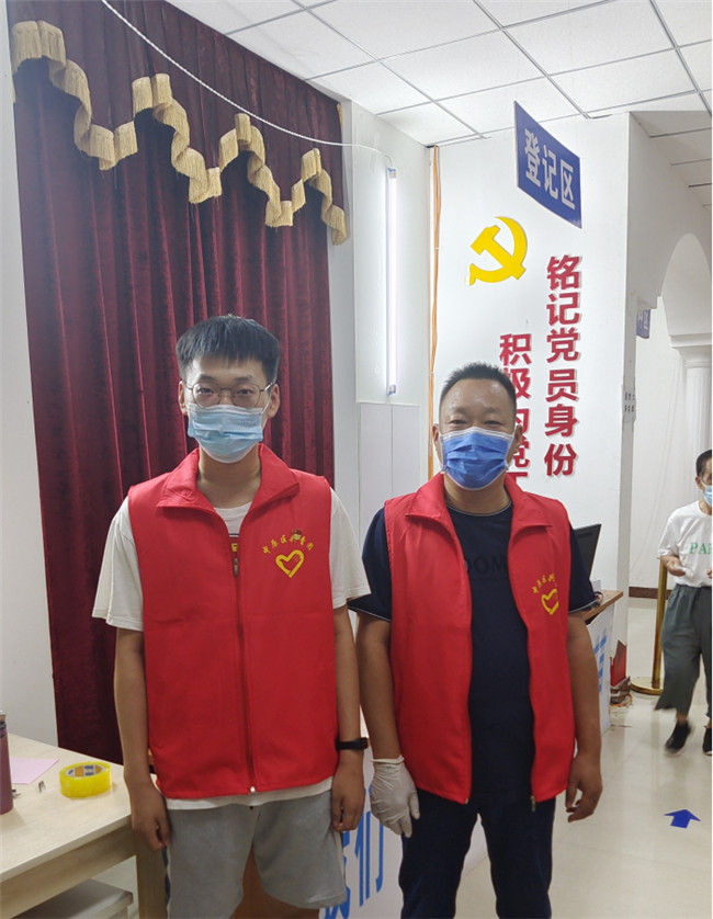 46歲的趙開言來自河南信陽大別山革命老區(qū),是一名共產(chǎn)黨員。8月1日鄭州市中原區(qū)啟動第一次全員核酸檢測,他第一個挺身而出到社區(qū)報名做志愿者。21歲的趙國洋是東北農(nóng)業(yè)大學物流工程專業(yè)的大三學生。在學校里,他品學兼優(yōu),曾任班長、學習委員等職務,并多次在學科競賽中獲得省級、國家級獎項。作為一名預備黨員,在父親的影響下他也主動請纓加入疫情防控志愿服務工作。父子二人身著紅馬甲與社區(qū)工作者、醫(yī)護人員和其他志愿者共同擔負起了秦江社區(qū)的各項疫情防控任務,用實際行動傳承紅色基因。