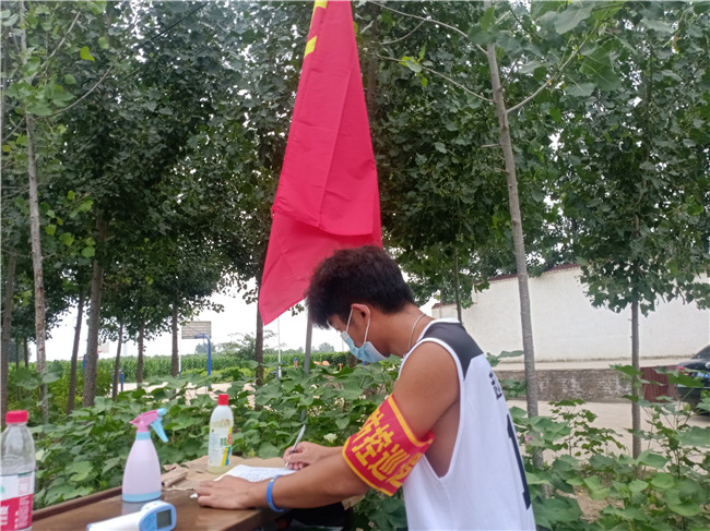 抗洪戰(zhàn)斗剛剛結(jié)束,疫情又席卷而來。疫情就是命令,服從當(dāng)?shù)攸h支部調(diào)配,李文博(19級藥品經(jīng)營與管理專業(yè))同學(xué)積極參與蘭考縣紅廟鎮(zhèn)雙楊樹村疫情防控志愿活動。他于八月初得知家鄉(xiāng)疫情防控急需志愿者并第一時(shí)間與村委黨支部聯(lián)系報(bào)名參加志愿活動。他在疫情防控卡點(diǎn)為來往村民測量體溫,并進(jìn)行個(gè)人信息登記,指導(dǎo)村民進(jìn)行健康碼自查以及檢查是否存在有與確診病例者密切接觸的情況。在蘭考全員核酸檢測期間,參與了組織紀(jì)律、引導(dǎo)村民文明檢測核酸的工作。