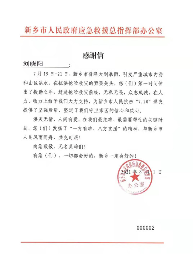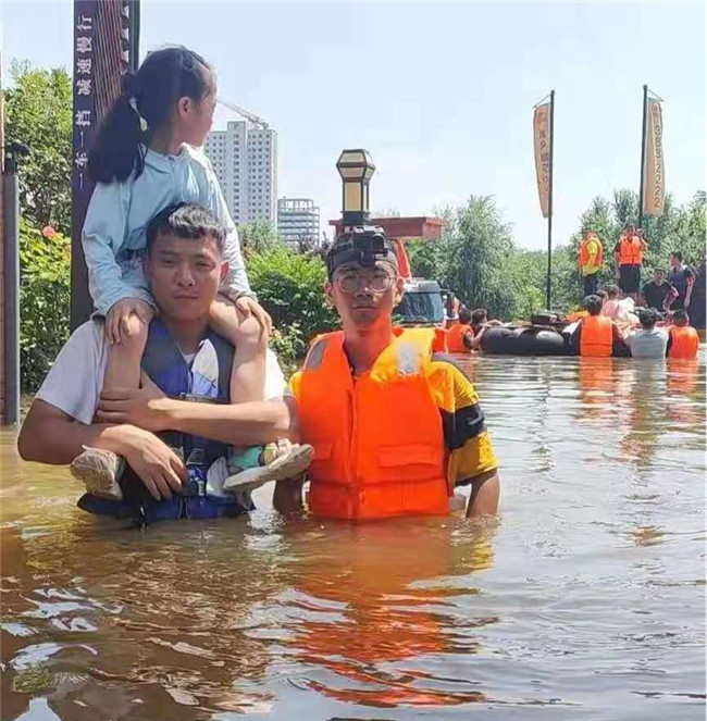 7月20日,河南省多地暴雨來(lái)襲,很多地方出現(xiàn)道路中斷、交通癱瘓、房屋被淹、停水停電等嚴(yán)重受災(zāi)情況。得知這一消息,正在校內(nèi)為測(cè)量技能比賽國(guó)賽備戰(zhàn)的劉曉陽(yáng),立馬向指導(dǎo)老師表示自己曾經(jīng)受過(guò)救災(zāi)培訓(xùn),想去抗洪救災(zāi)一線,幫助需要幫助的人。得到同意后,劉曉陽(yáng)會(huì)同學(xué)校其他六位同學(xué),與南陽(yáng)市其他志愿者們一道,奔赴抗洪救災(zāi)第一線。他們7月23日出發(fā),直到31日抗洪形勢(shì)好轉(zhuǎn)才返回學(xué)校。期間,他們輾轉(zhuǎn)新鄉(xiāng)市鳳泉區(qū)、衛(wèi)輝市、鶴壁市?h等地,配合當(dāng)?shù)卣,參加?yīng)急值守、安全救援、協(xié)助轉(zhuǎn)移、分發(fā)物資、排污清淤、登記統(tǒng)計(jì)受災(zāi)群眾信息等多項(xiàng)工作,為災(zāi)區(qū)人民獻(xiàn)上了自己的一份綿薄之力。