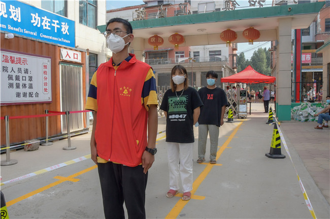 劉曉陽(yáng)返回學(xué)校后,因國(guó)賽推遲舉行,他就回到民權(quán)縣人和鎮(zhèn)劉寨村的家中。八月份后,因疫情形勢(shì)突然嚴(yán)峻,各地進(jìn)行了嚴(yán)格的封控。身為入黨積極分子的劉曉陽(yáng),牢記學(xué)校和老師的教誨,主動(dòng)請(qǐng)纓、迅速投入到所在地的疫情防護(hù)工作中,踐行著一名當(dāng)代大學(xué)生的責(zé)任和奉獻(xiàn)。自8月9號(hào)開(kāi)始,劉曉陽(yáng)一直奮戰(zhàn)在疫情防護(hù)第一線,協(xié)助當(dāng)?shù)鼗鶎痈刹,做好所在地人員排查、體溫測(cè)量、人員登記、宣傳防疫知識(shí)、街道消毒、全員核酸檢測(cè)......烈日炎炎,每天工作十幾個(gè)小時(shí),但他不喊苦喊累,用辛勤和汗水守護(hù)者群眾的安全,用行動(dòng)詮釋著當(dāng)代青年大學(xué)生的勇敢和擔(dān)當(dāng)。