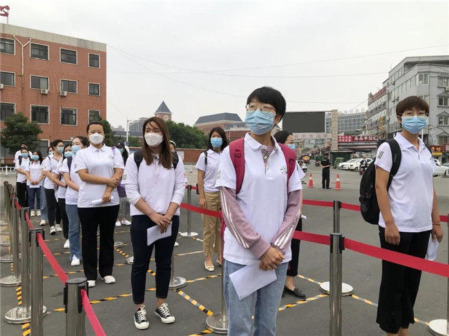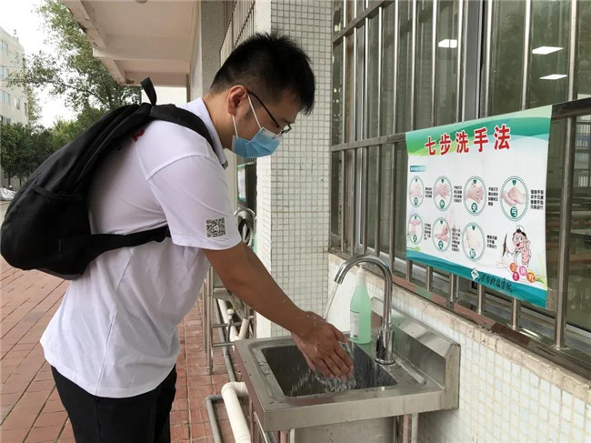 學校提前對教室進行打掃、通風及消殺工作。學生在教學樓前間隔1米進行排隊,檢查無異議之后,學生經(jīng)過消毒進入教學樓。