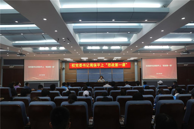 校黨委副書記、工會(huì)主席楊士恒,黨政辦公室、黨委宣傳部、學(xué)生工作部、團(tuán)委等部門負(fù)責(zé)人,各學(xué)院學(xué)生工作主要負(fù)責(zé)人,全體輔導(dǎo)員、學(xué)生干部代表共同聆聽了“思政第一課”。