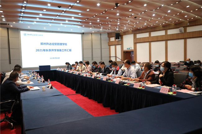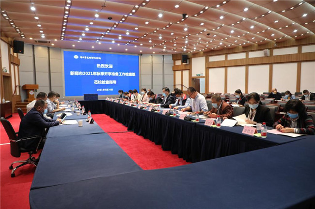 中新河南網(wǎng)9月27日電(趙建華 邵帥)9月26日上午,新鄭市教育園區(qū)管委會招商引資局局長張春旺,新鄭市衛(wèi)健委分包學校負責人趙耀輝、趙振偉、新鄭市市場監(jiān)管局副所長范偉強、新鄭市教育防控部第二督查組組長郭建偉、龍湖鎮(zhèn)小喬村黨支部書記趙留喜一行6人,蒞校檢查指導鄭州升達經(jīng)貿(mào)管理學院2021年秋季學期開學準備工作。校領導王新奇、郭愛先、張金安、張其武及各工作專班組長、相關(guān)工作人員參加了匯報會。匯報會由校辦主任朱永恒主持。