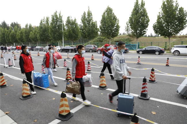 嚴(yán)格落實(shí)疫情防控常態(tài)化要求,測(cè)溫消殺、出示健康碼及身份核對(duì)……,新生們通過(guò)專用通道有序進(jìn)入校園。校園內(nèi)外,志愿者們熱情地迎接新生,從新生及家長(zhǎng)手中接過(guò)一件件行李,同時(shí)為他們答疑解惑,引領(lǐng)本院新生來(lái)到報(bào)到通道辦理入學(xué)手續(xù),有序完成核驗(yàn)身份信息、核對(duì)交費(fèi)、注冊(cè)報(bào)到、安排住宿等事項(xiàng),以貼心的幫助、微笑的服務(wù),讓新生舒緩了心情、給新生和家長(zhǎng)留下了美好印象。學(xué)校還配備了擺渡車為新生搬運(yùn)行李物品,使新生享受到了熱情周到的服務(wù),成為校園里一道靚麗的風(fēng)景線。