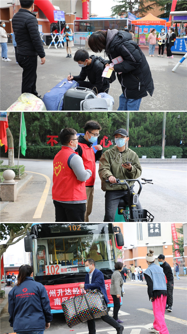 按照疫情防控的要求,送新生的家長們不能進(jìn)入學(xué)校。為了解決同學(xué)們運(yùn)送行李的需要和打消家長們的顧慮,學(xué)校提前協(xié)調(diào)了專門車輛并在全校范圍內(nèi)招募了師生志愿者幫助學(xué)生搬運(yùn)行李。據(jù)悉,教師志愿者近50人,分為3個(gè)負(fù)責(zé)區(qū)域,9個(gè)志愿小組。校園內(nèi)擺渡車、大巴車不斷往返于報(bào)到處與宿舍之間,運(yùn)送新生及其行李,為學(xué)生入校提供熱情周到的服務(wù)。為保障秋季學(xué)期學(xué)生入學(xué)平安,學(xué)校嚴(yán)格按照省教育廳和屬地教育系統(tǒng)疫情防控指導(dǎo)標(biāo)準(zhǔn),科學(xué)制定秋季學(xué)期學(xué)生返校4開學(xué)工作方案,各相關(guān)職能部門、各學(xué)院也按照學(xué)校疫情防控工作指揮部的安排部署,做好相關(guān)準(zhǔn)備工作。