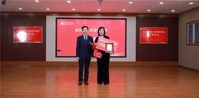 陳向煒與校長教學(xué)杰出貢獻獎獲得者楊靜頒獎合影